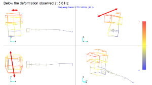 • Analyse de déformation opérationnelle (ODS) révélant des modes globaux à 6 Hz et 12 Hz.